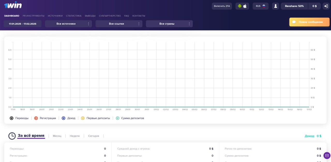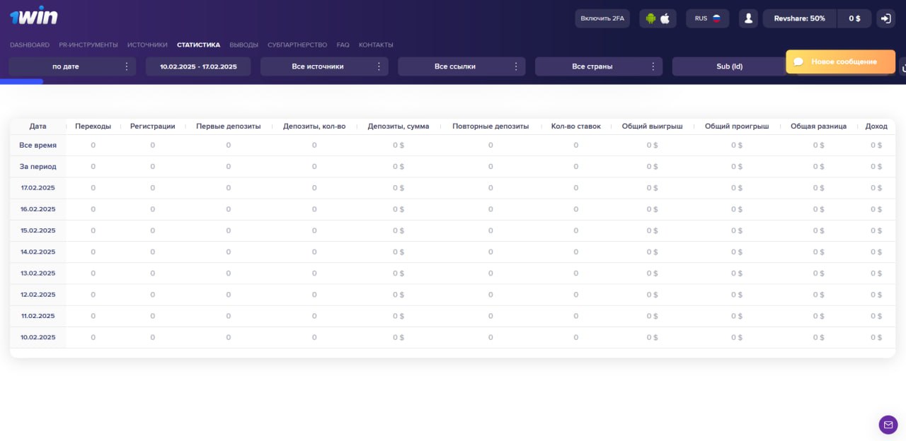 1win партнерка удобна в использовании благодаря многочисленным параметрам отображения статистики:
