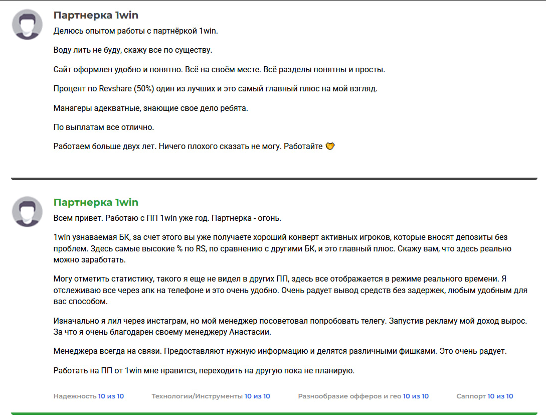 В интернете встречаются различные отзывы на партнерку 1win. Есть много положительных: аффилиаты подчеркивают индивидуальное отношение к каждому вебмастеру и готовность идти на уступки ради совместной прибыли.