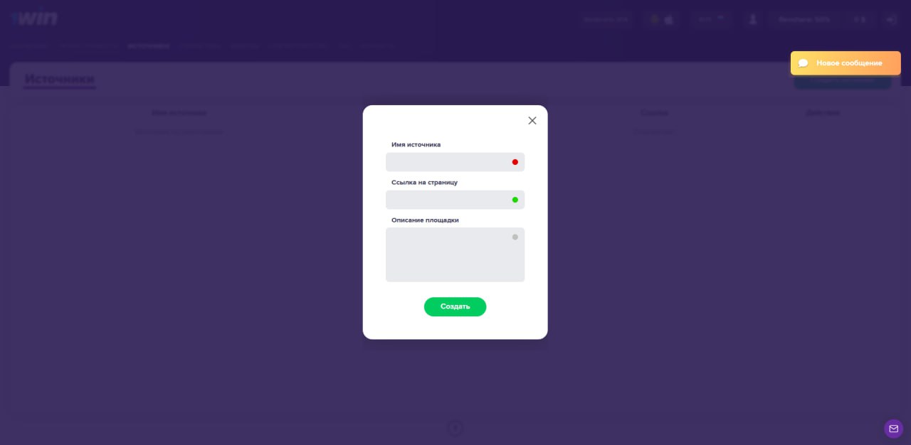 Добавьте источник на платформу, указав его имя, ссылку на страницу и описание площадки: