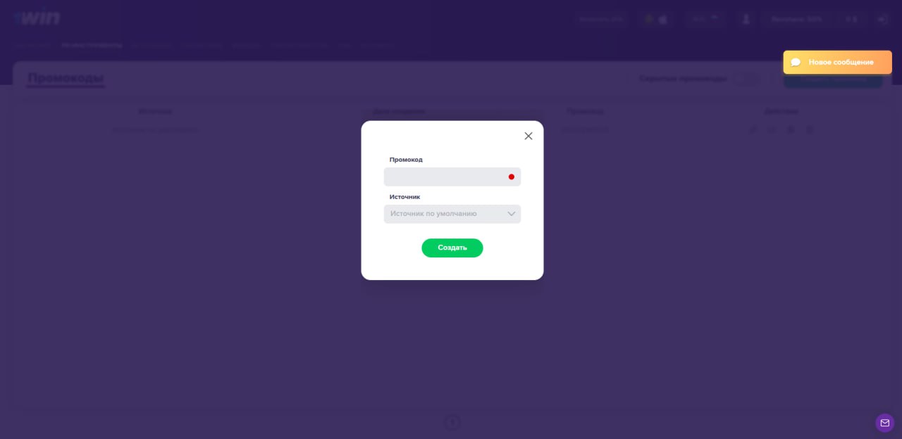 1win партнерка также предлагает создать собственный промокод с любым текстом: нужно лишь придумать название и указать источник трафика.