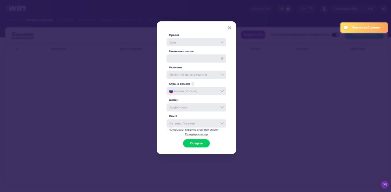 А чтобы сделать партнерскую ссылку, нужно выбрать проект для залива трафика, название ссылки, источник, домен, ГЕО домена и направление, куда будут переходить пользователи: