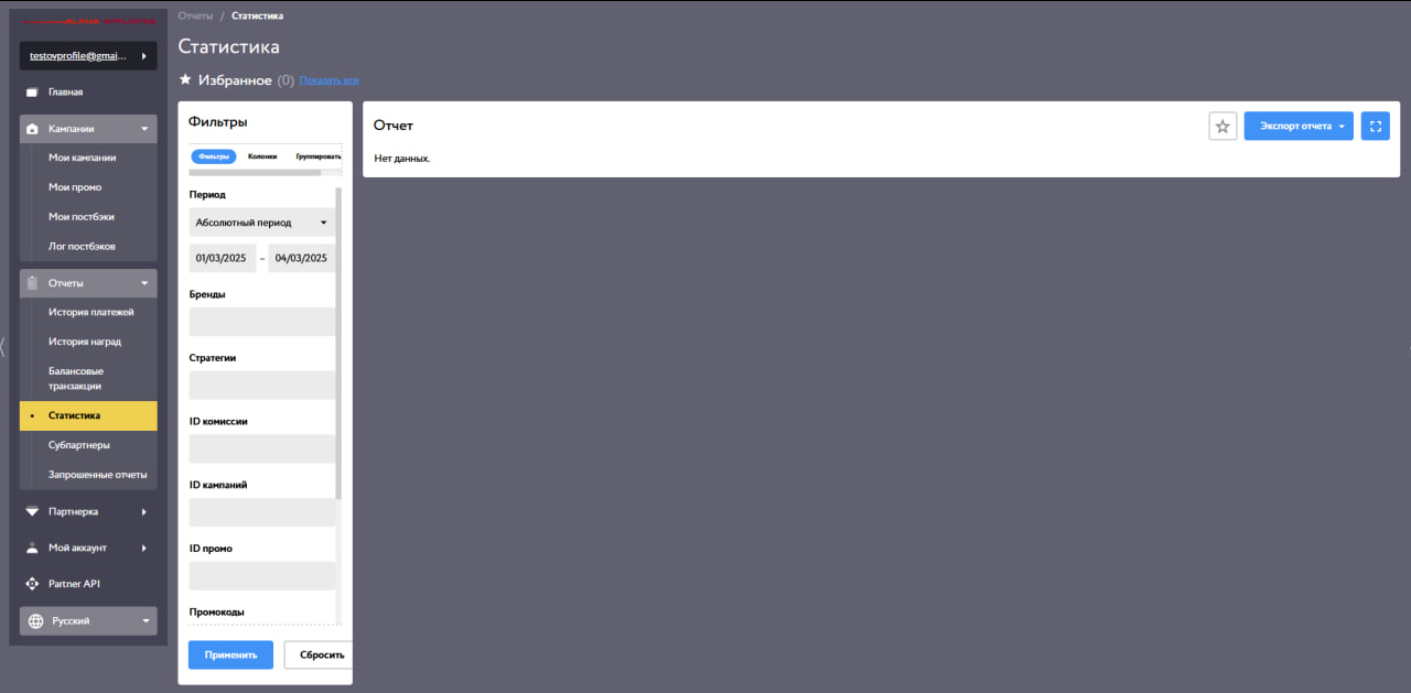 Партнерский раздел создан для удобства аффилиатов и ознакомления с платформой. Он включает в себя: