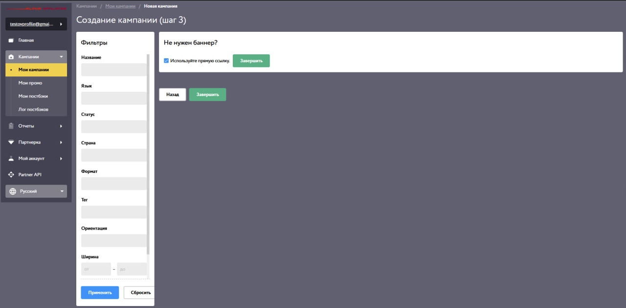 Наконец, вы можете продвигать оффер через баннер или прямую ссылку: