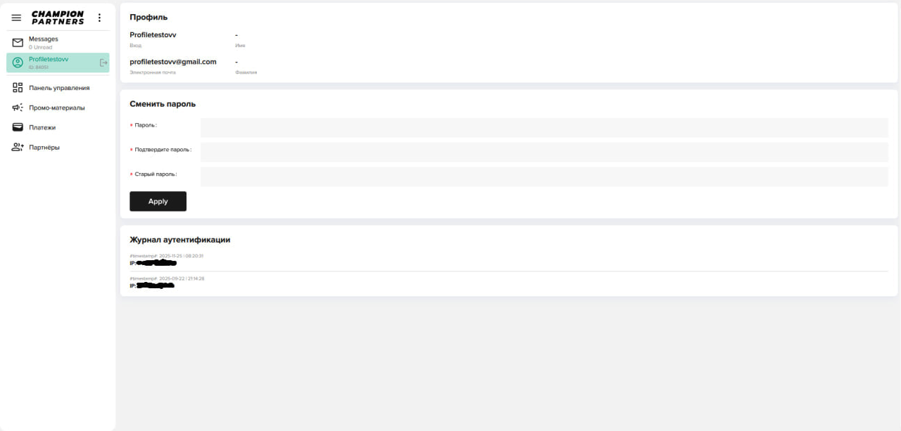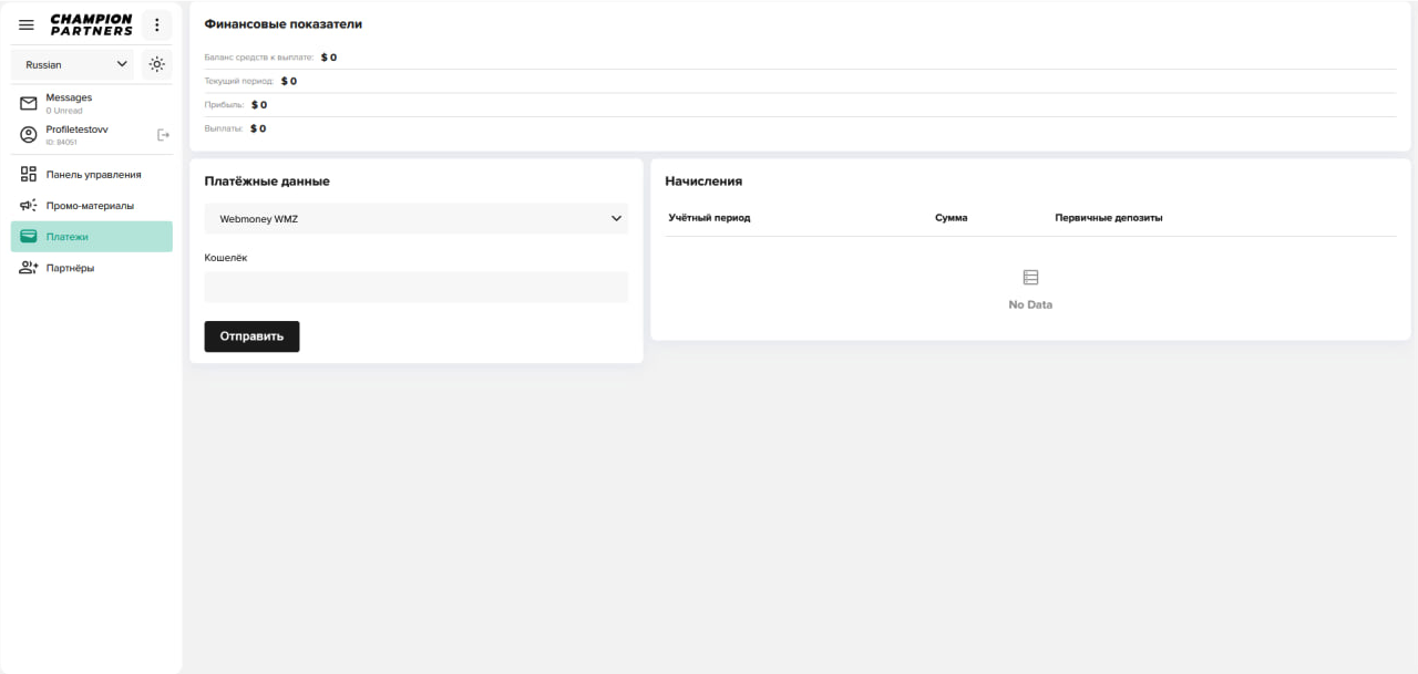 Champion Partners платит вебмастерам дважды в месяц: 1 и 16 числа происходят сверки по трафику, а после этого выплаты уходят в течение пяти рабочих дней.