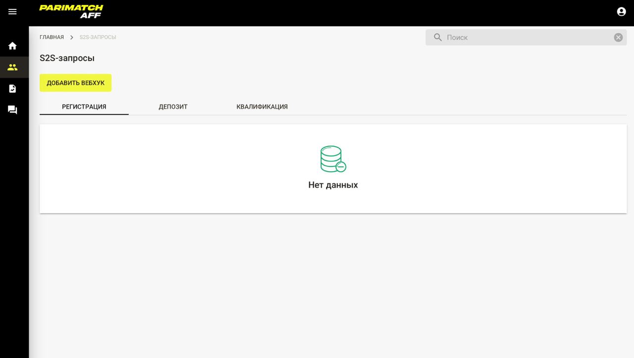 Также вы можете сгенерировать вебхук под одно из трех действий: регистрация, депозит и квалификация.