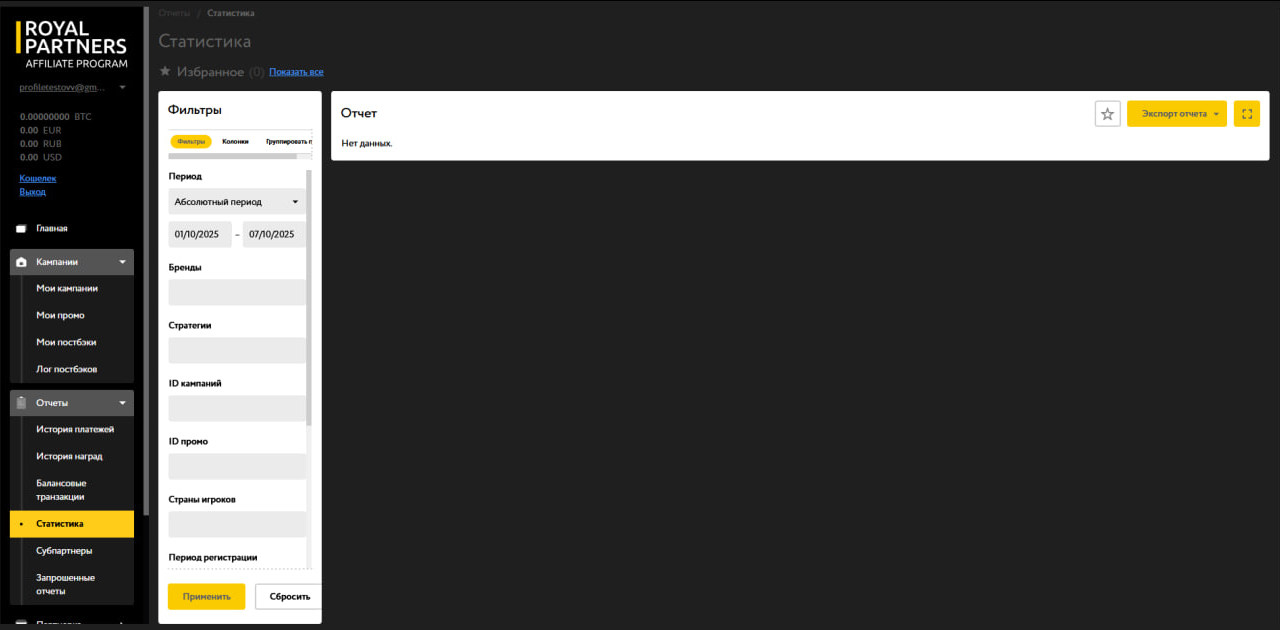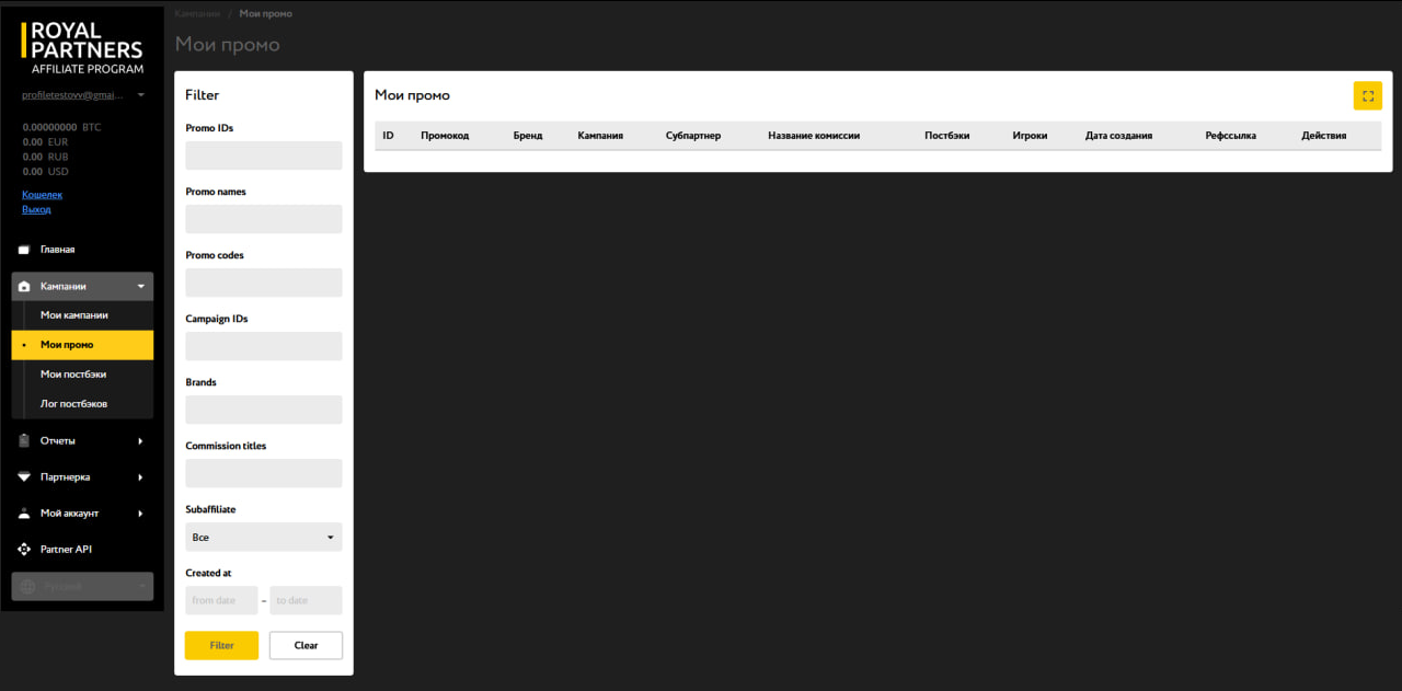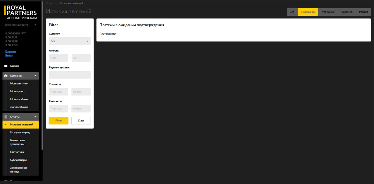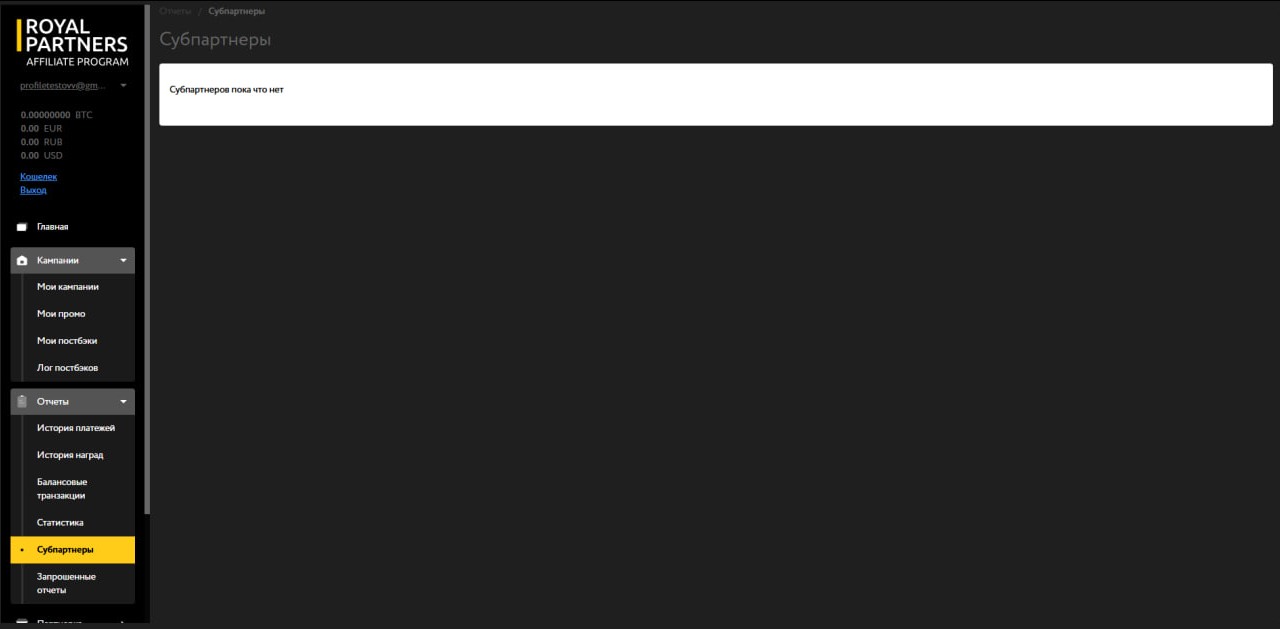 В Royal Partners можно привлекать других аффилиатов с целью заработка: вы получите до 5% от дохода партнеров. Субпартнерская программа подключается при помощи личного менеджера.