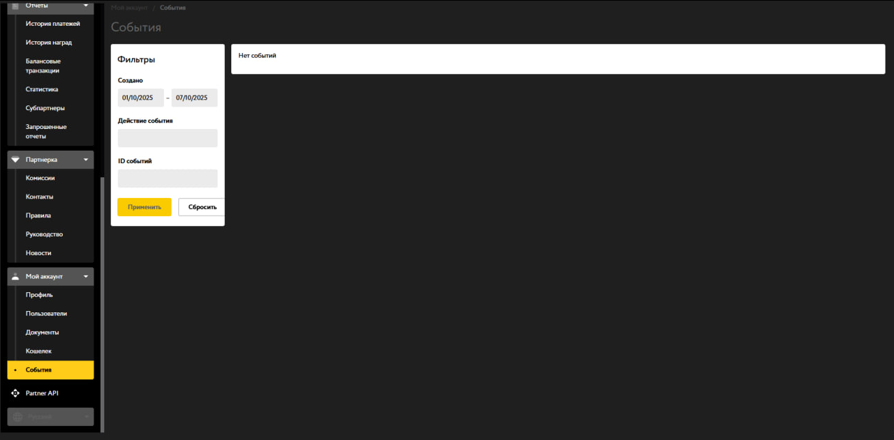 Вы также можете просмотреть все события, связанные с вашим аккаунтом. Их можно разбить по временному промежутку, действию и ID события.