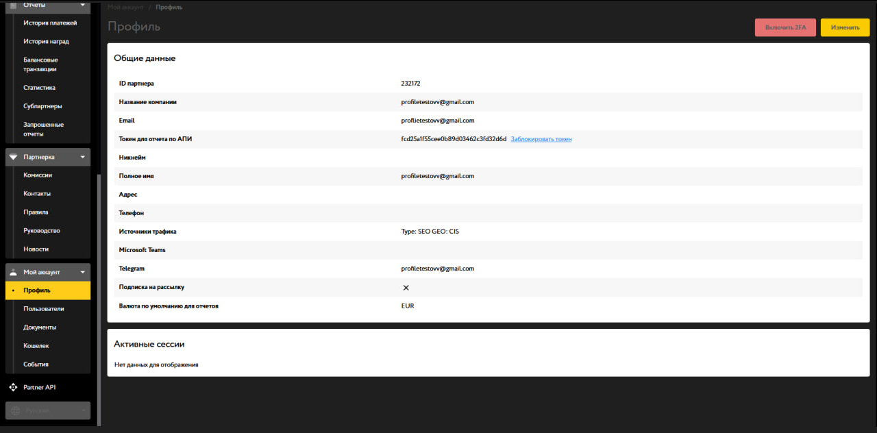 Также есть опции подписки на рассылки от ПП и подключения 2FA.