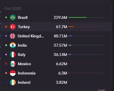 Для сравнения, по показателю Blask Index на октябрь 2025 года Бразилия опережает Индию, Мексику, Турцию, Великобританию, Ирландию, Италию и Индонезию.