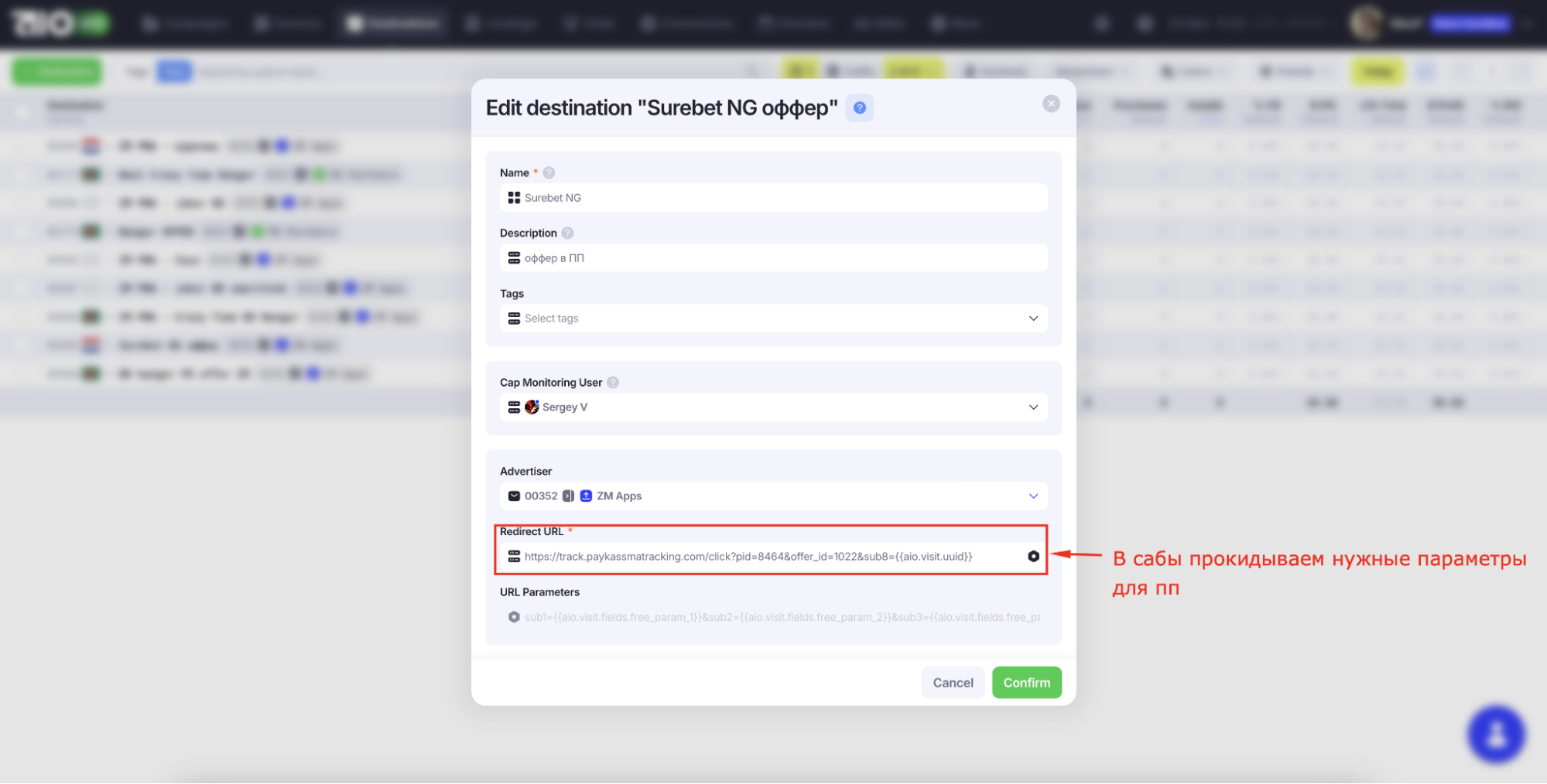 6. Добавьте все UTM-метки, которые необходимо передавать на сторону рекламодателя.