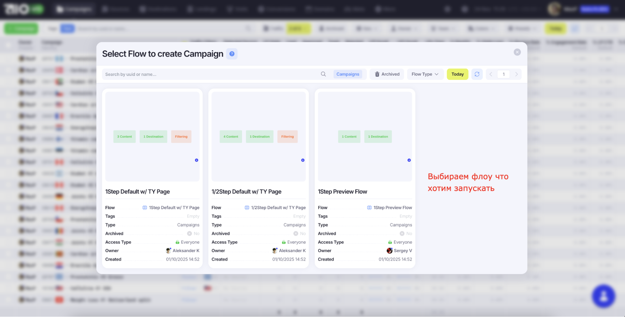 Здесь вы увидите, как настроены клока, white page, прелендинг и destination. Это отличная возможность посмотреть на примеры правильной настройки и понять, как работают разные элементы. Вы можете открыть каждую кампанию и изучить ее.
