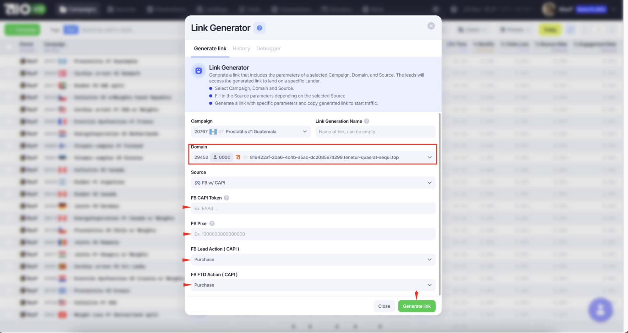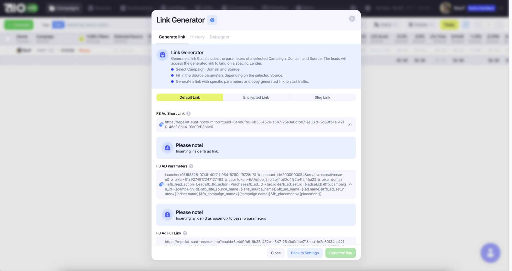 Чтобы сгенерировать трекинговую ссылку:
