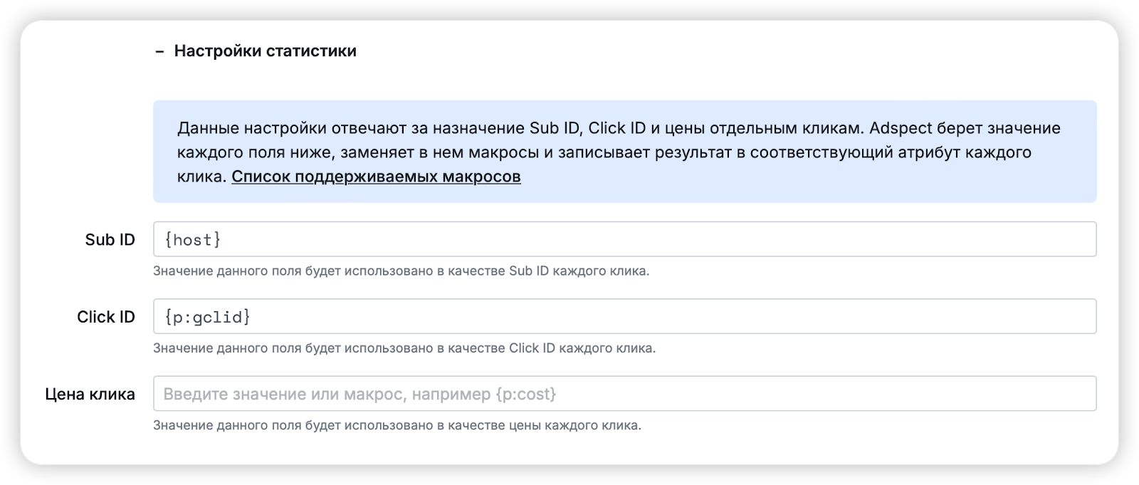 В Adspect.ai есть собственная аналитика и трекер, поэтому отдельные инструменты для анализа кампании могут не понадобиться.