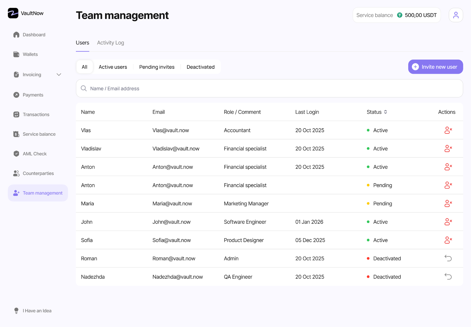 В VaultNow можно пригласить членов своей команды и дать каждому свой уровень доступа: кто может просматривать, редактировать или создавать кошельки, кто видит платежи, кто может их совершать и т. д. При этом для проведения платежа всегда требуется апрув овнера, но теперь это занимает секунды.