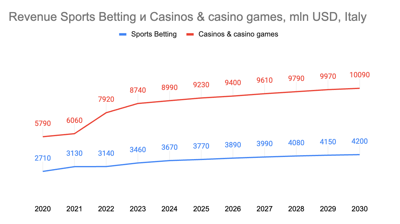 Рост выручки на итальянском рынке умеренный, а показатель CEB почти не изменился — это указывает на предсказуемость рынка. Для операторов это значит, что конкуренция идет за удержание и лояльность игроков. Законно работать в стране смогут только самые крупные и технологически продвинутые компании. Цена новой лицензии на девять лет — €7 млн. Это абсолютный рекорд для Евросоюза.