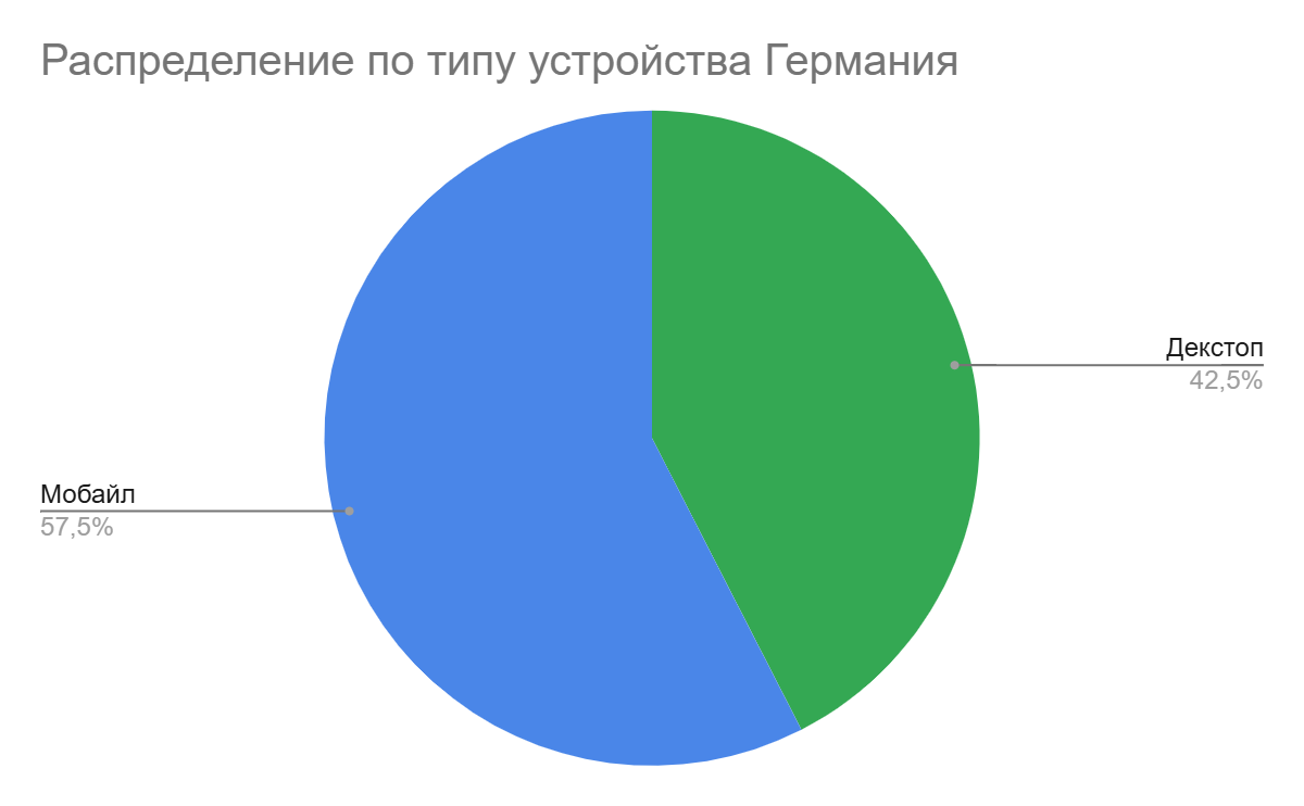 Мобайл занимает 58%, но десктоп здесь все еще популярен — 42%.
