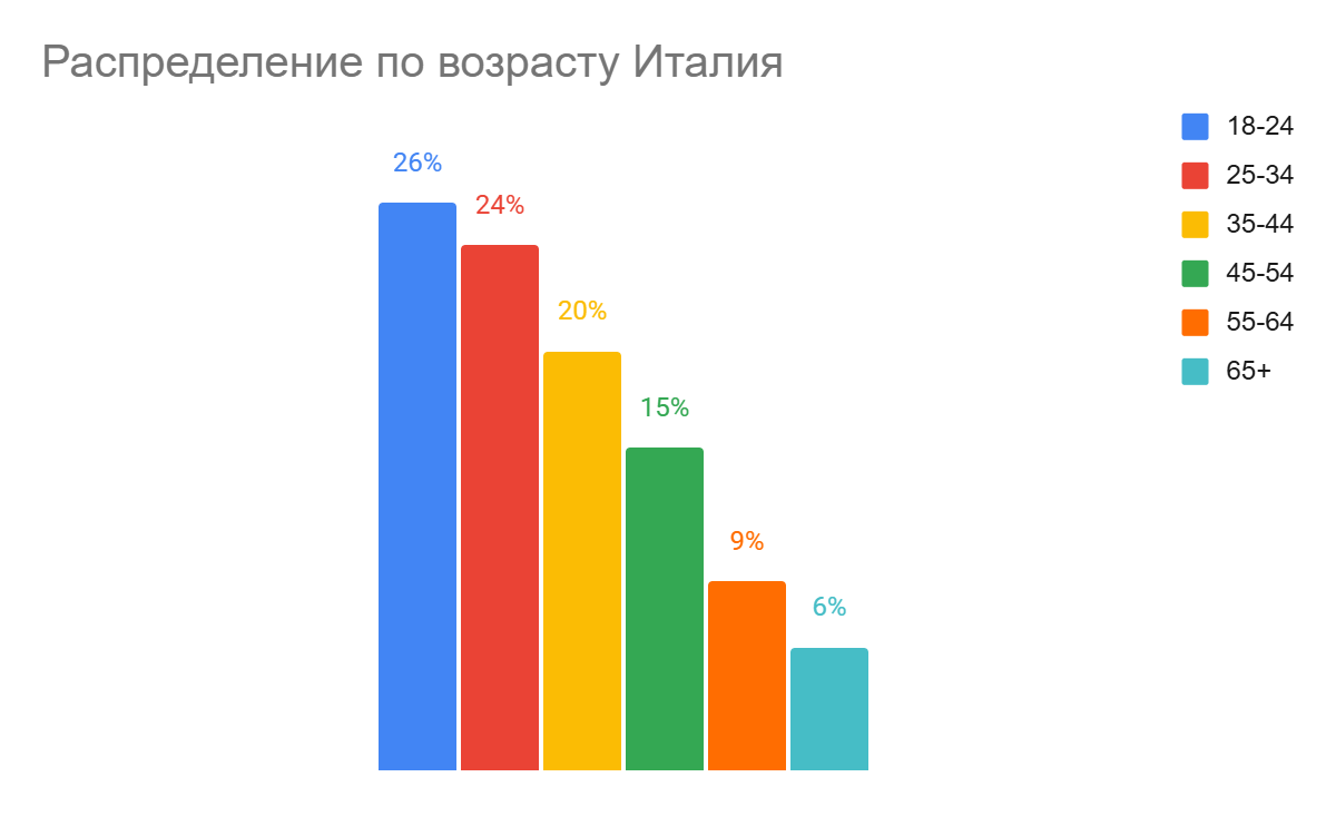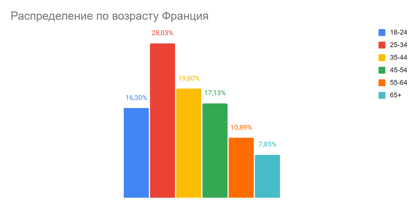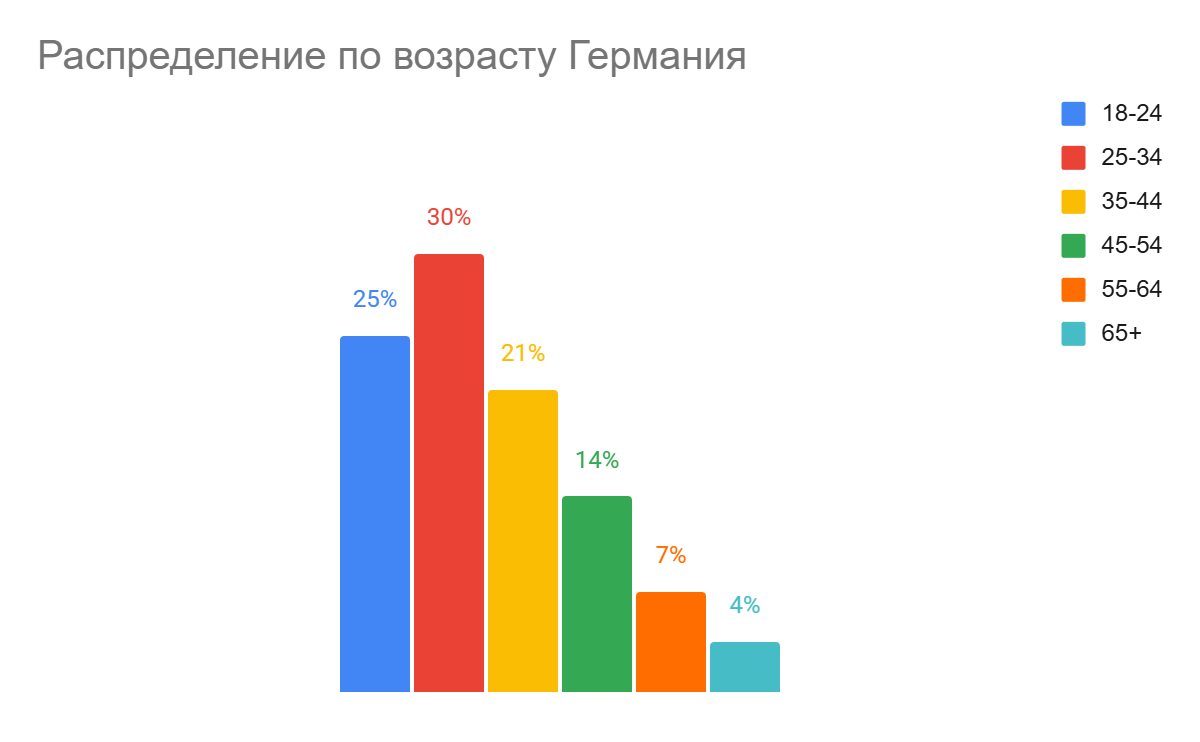 Основная аудитория — мужчины (58%) 25–44 лет.
